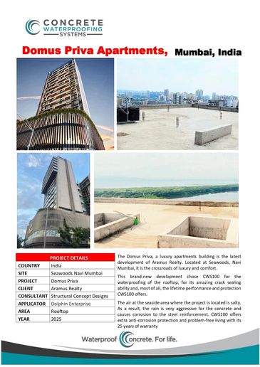 CWS100® Concrete protection & Waterproofing system is engineered for high-performance waterproofing of concrete structures that demand long-term durability, fast application, and resistance to thermal stress.